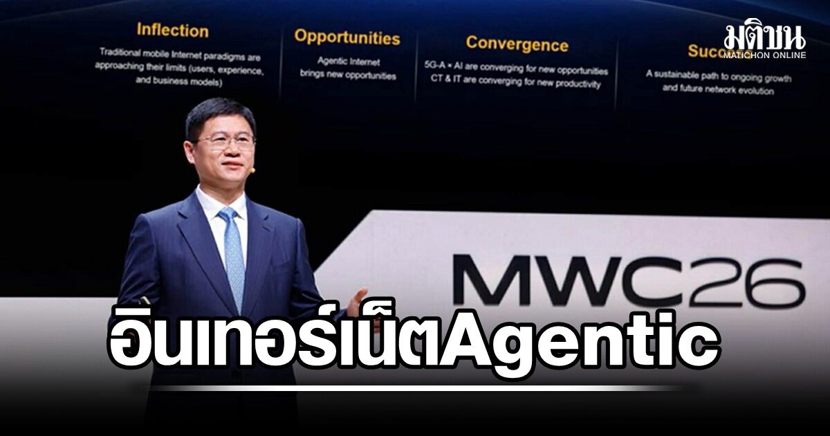 ในงาน MWC Barcelona 2026 นายหลี่ เผิง รองประธานอาวุโสของหัวเว่ย เผยวิสัยทัศน์สำคัญที่จะเปลี่ยนโฉมอุตสาหกรรมโทรคมนาคม โดยชี้ว่าเราไม่ได้อยู่ในยุค 5G ธรรมดาอีกต่อไป แต่กำลังก้าวเข้าสู่ "ยุคอินเทอร์เน็ตแบบ Agentic" ที่เครือข่ายจะต้องรองรับการทำงานของเอเจนต์ AI นับไม่ถ้วน